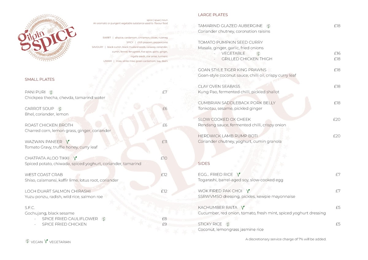 Whether you’re dining with family, friends, or for a special occasion, Gilpin Spice provides a relaxed yet elegant atmosphere. The well-curated wine list complements the meal, with a selection of crisp whites and rich reds, making it easy to find the perfect pairing.